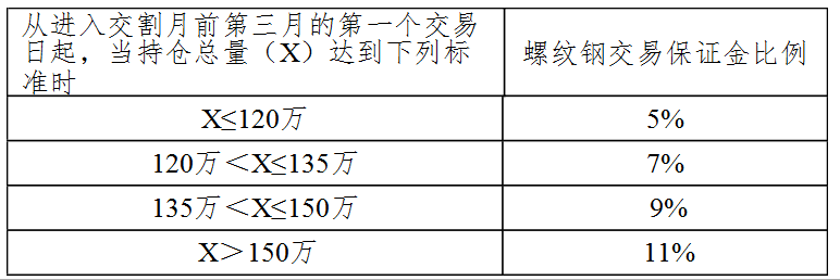 表七 螺纹钢期货合约持仓量变化时的交易保证金收取标准