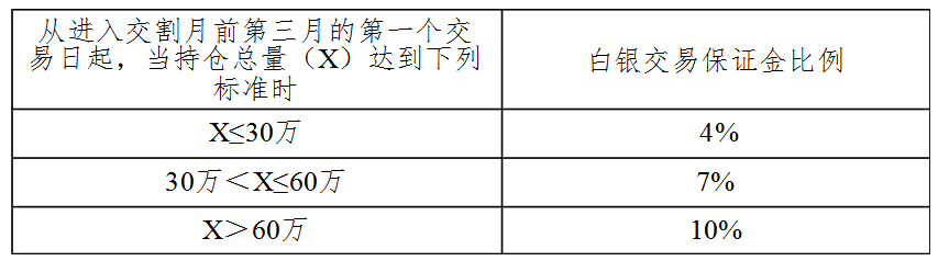 表十 白银期货合约持仓量变化时的交易保证金收取标准