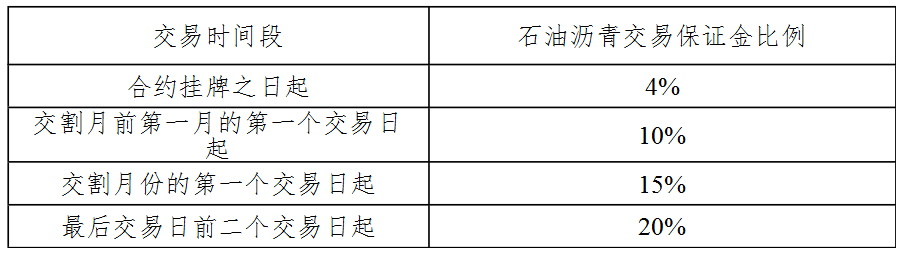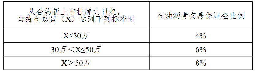 表十二 石油沥青期货合约持仓量变化时的交易保证金收取标准