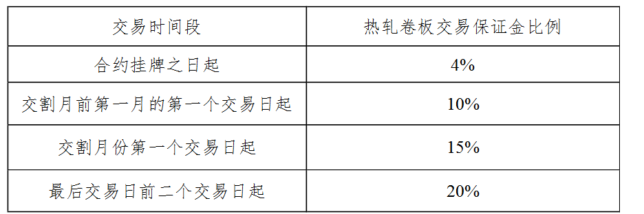 表二十一 热轧卷板期货合约上市运行不同阶段的交易保证金收取标准